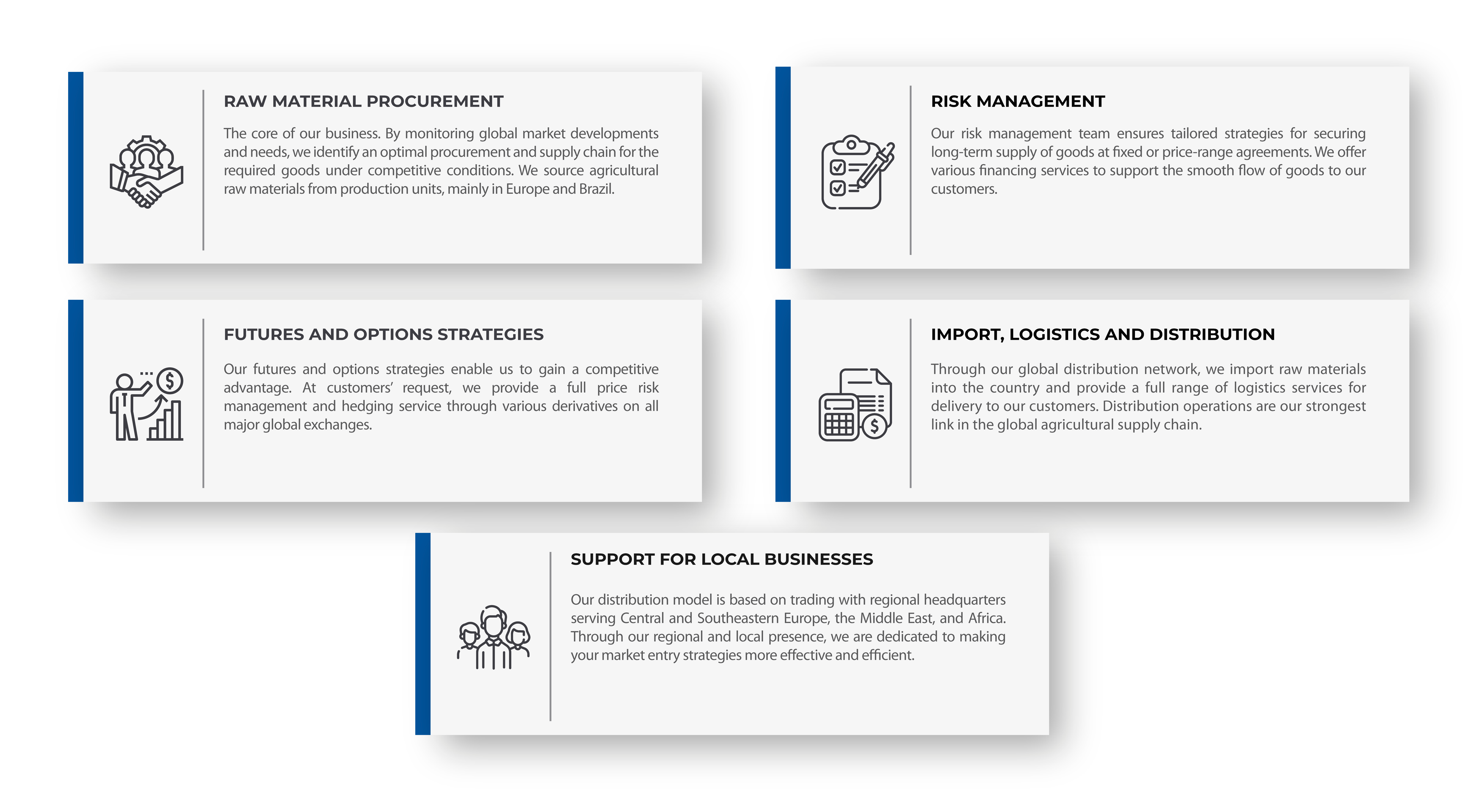 The business group STUDEN GLOBAL has more than 25 years of experience in the procurement, processing, and distribution of agricultural products such as sugar, edible oils, grains, and coffee. A large number of STUDEN GLOBAL companies form a reliable and efficient trading and distribution network that provides its customers with the highest‑quality raw materials and services.